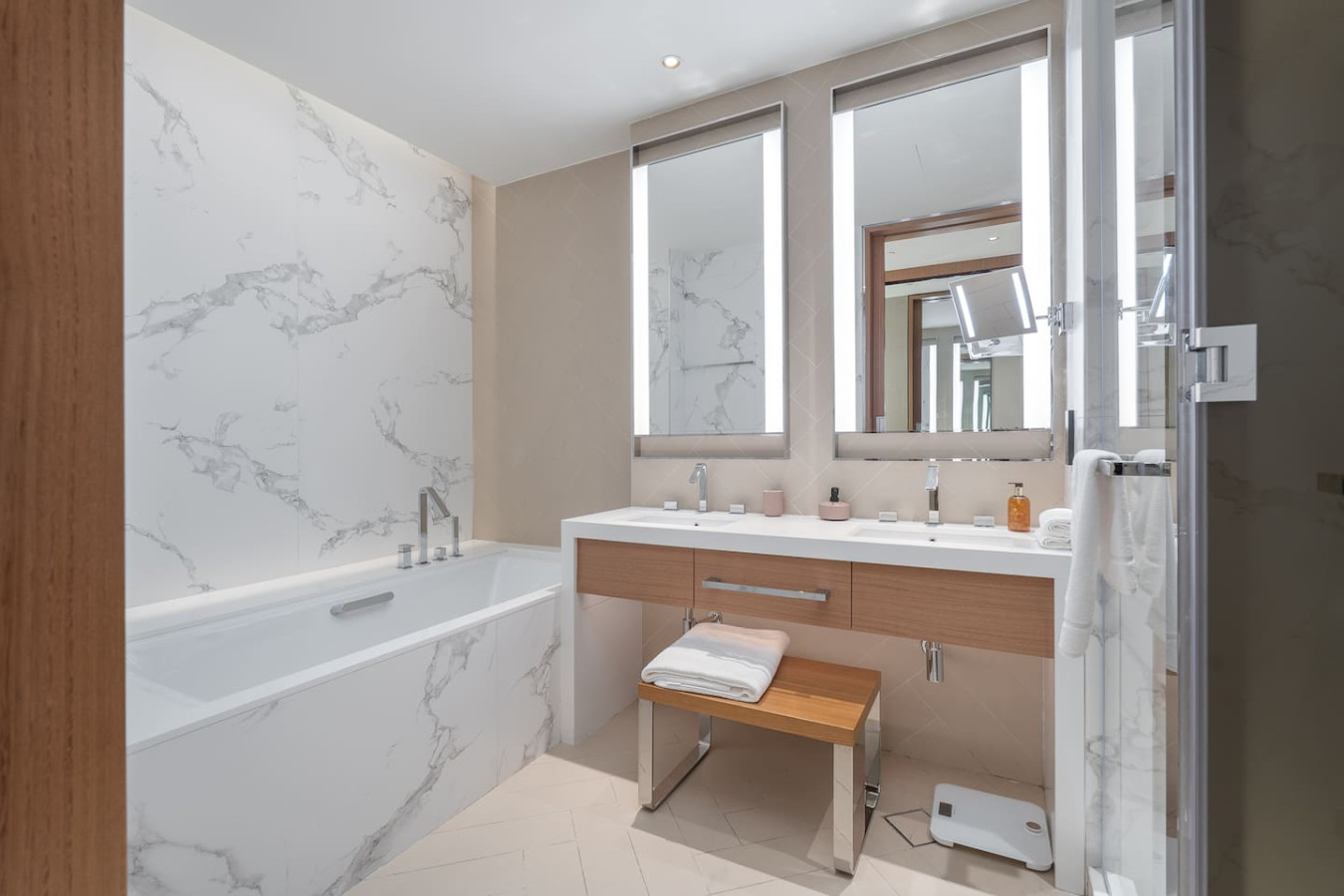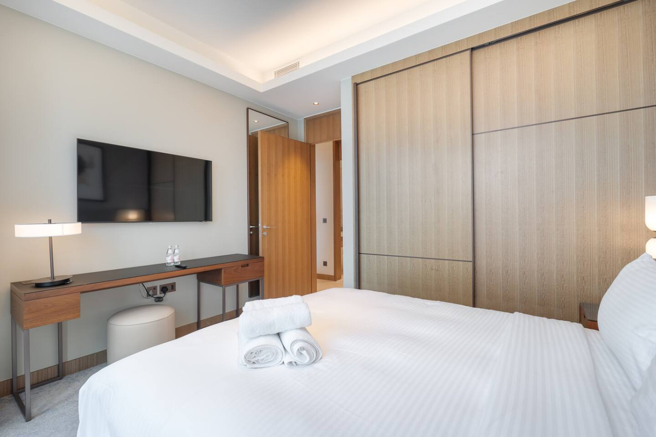 • Bedrooms: The apartment features three generously sized bedrooms, each equipped with a plush king-sized bed to ensure a restful night’s sleep.