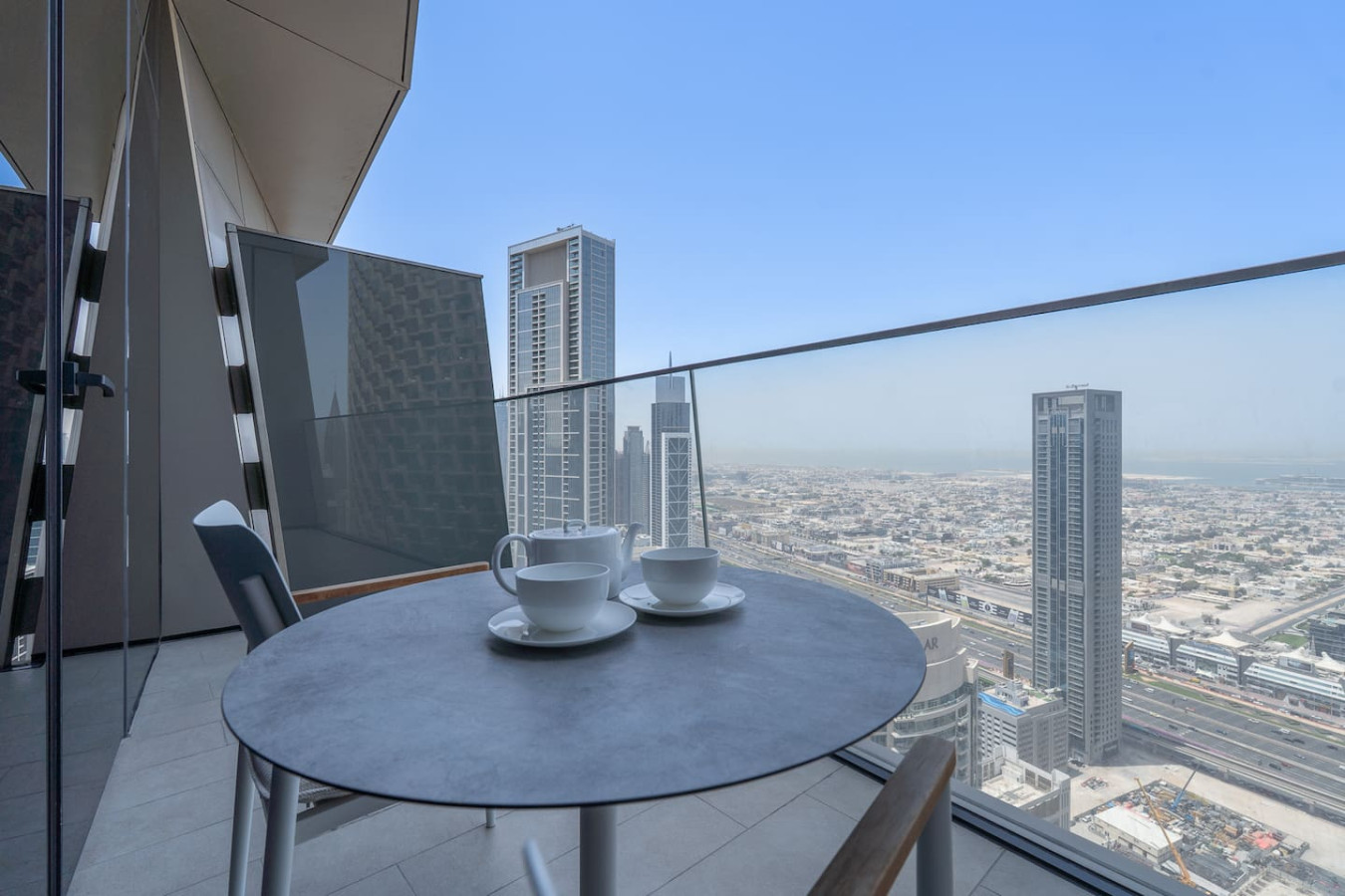 π BALCONY: Step out onto your private balcony and enjoy panoramic views of the Dubai skyline and the waters of the canal.