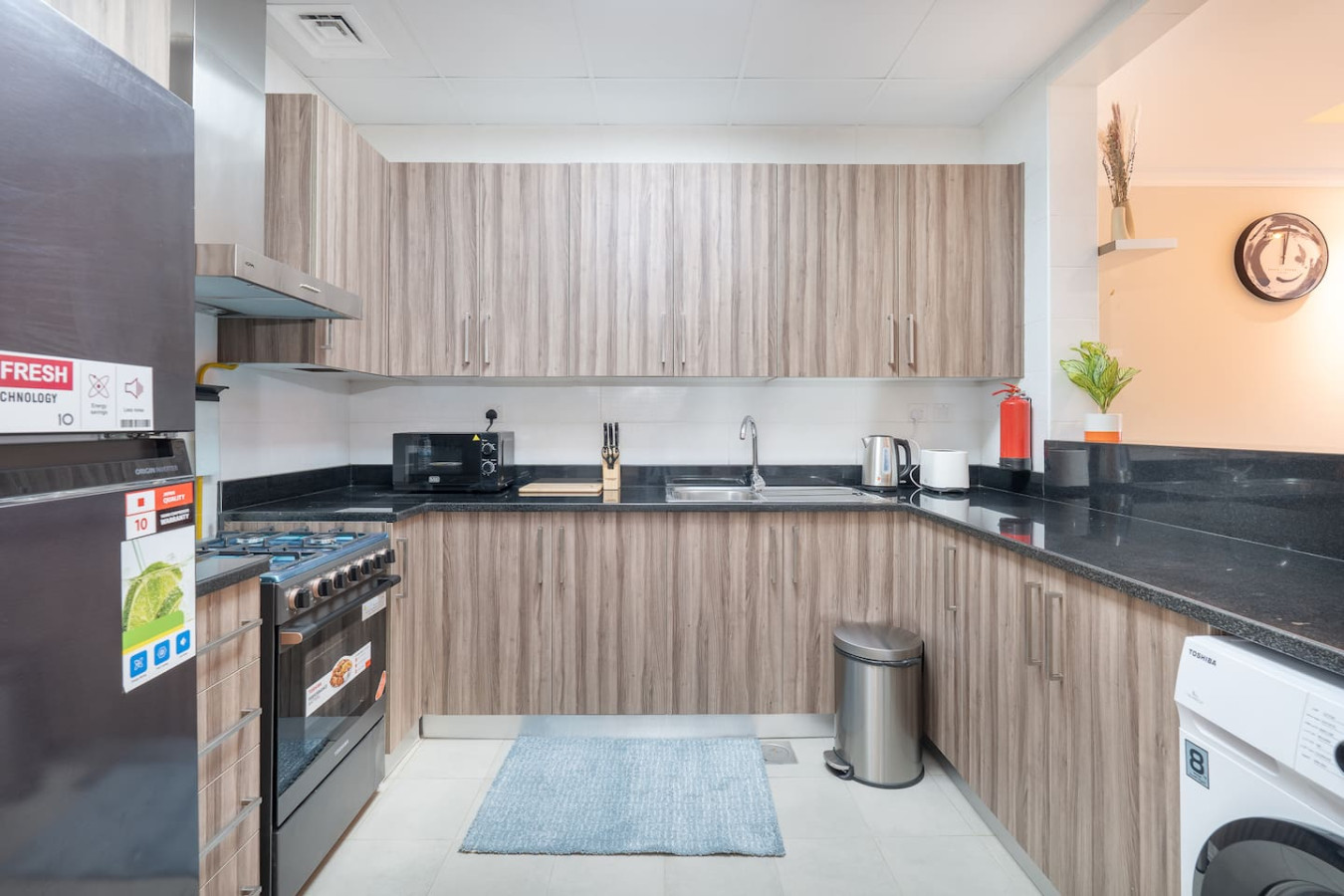 The apartment is thoughtfully designed with modern amenities, ensuring a relaxing environment. You'll find a fully equipped kitchen, a comfortable living area, and a stylish bathroom. Step outside, and you'll be surrounded by the vibrant attractions of Dubai, including shopping, dining, and entertainment options.