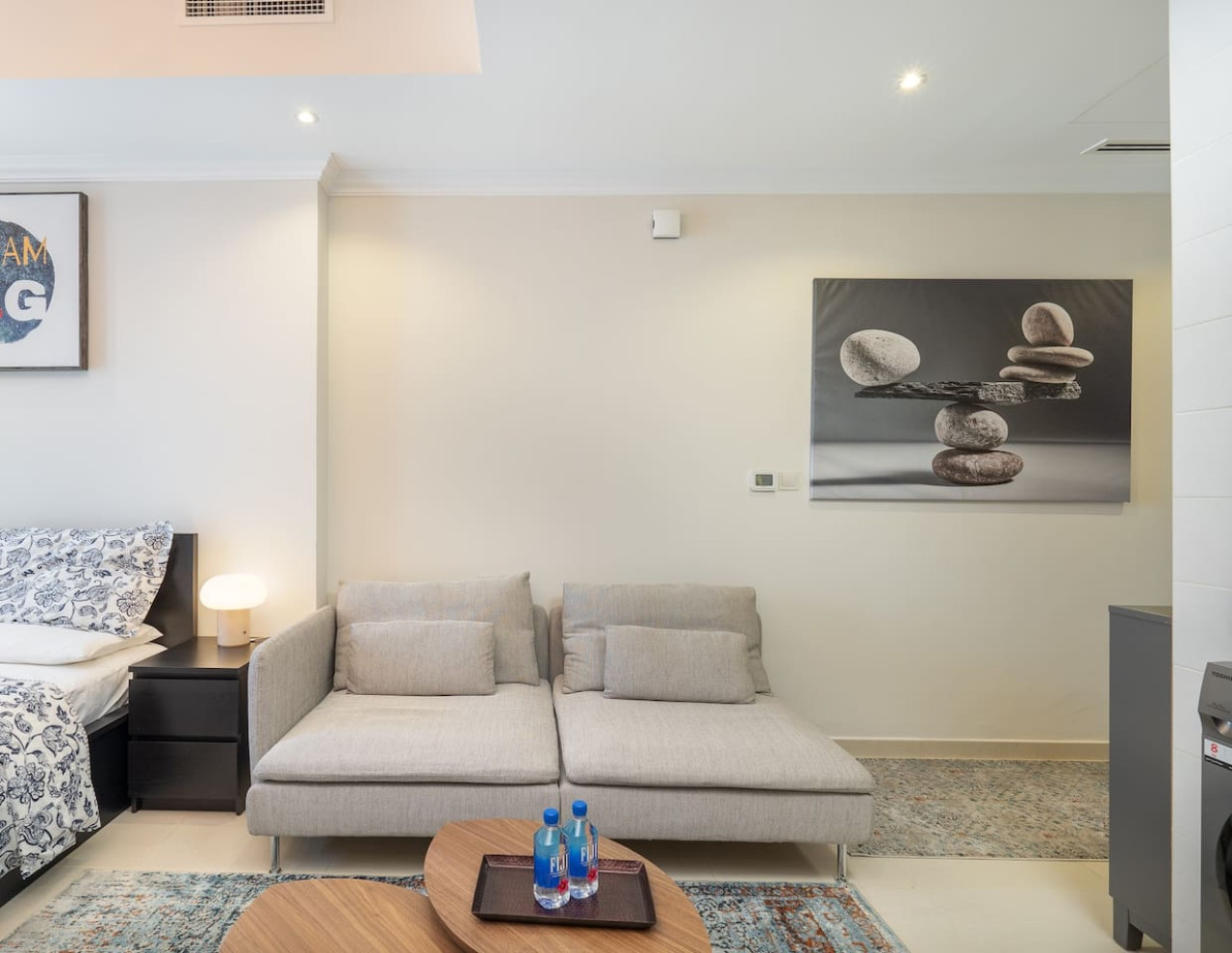 This modern space features a plush king bed and a versatile sofa bed, accommodating up to four guests. Enjoy complimentary Wi-Fi and secure parking during your stay.